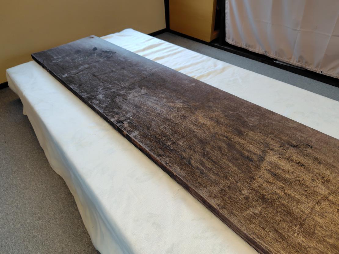 薬品で洗って研磨して文字を書いて外部用のクリアを塗って完成しました!